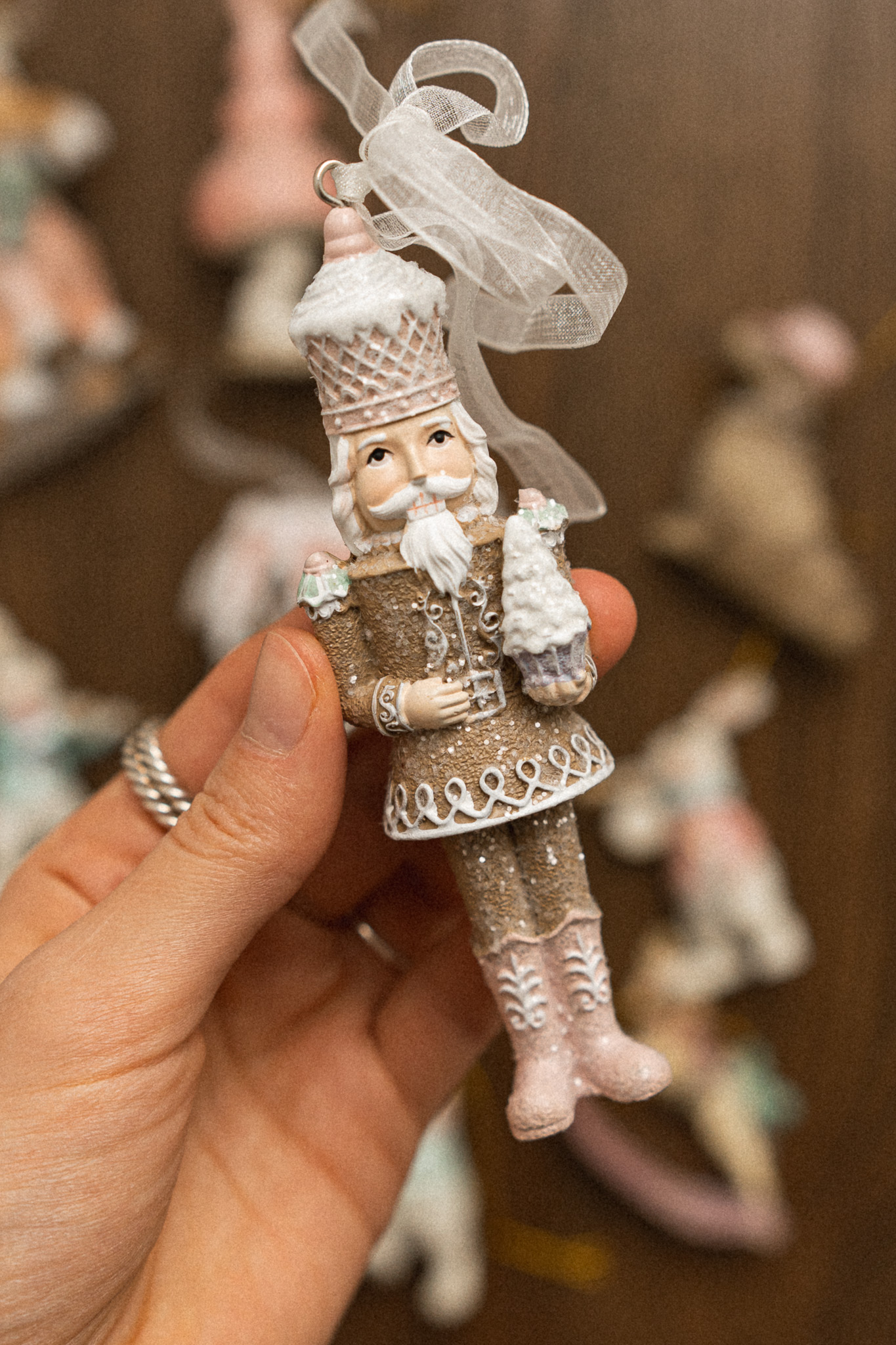 Іграшка на ялинку Лускунчик, колір – імбирний з рожевим 12 см