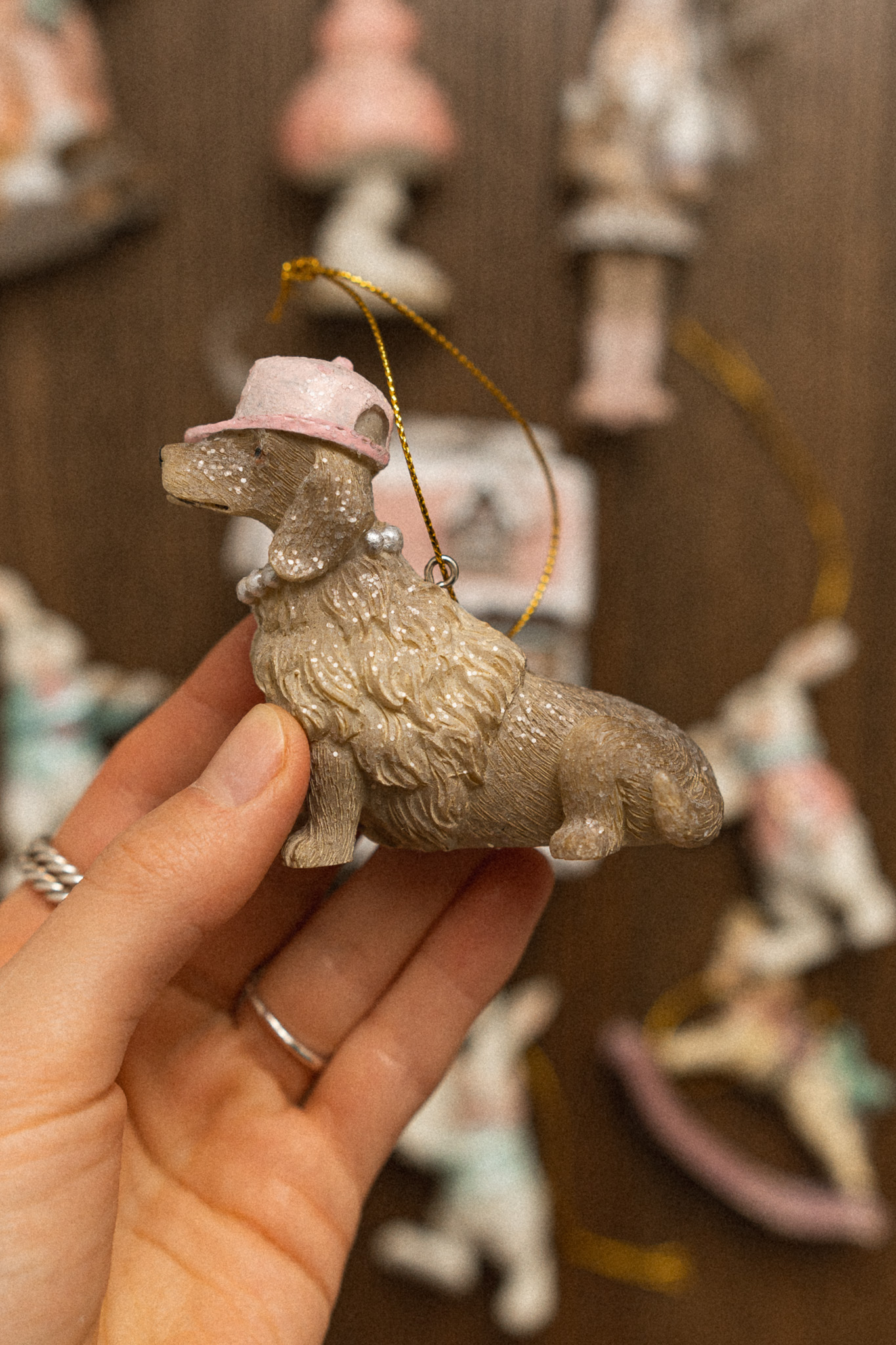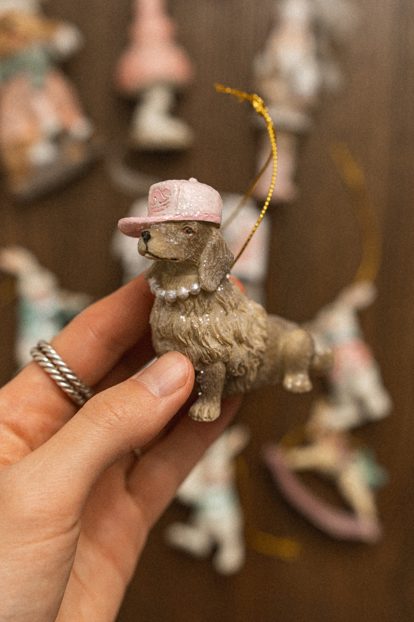 Іграшка на ялинку Собачка в рожевій кепці 7.5*3*7см