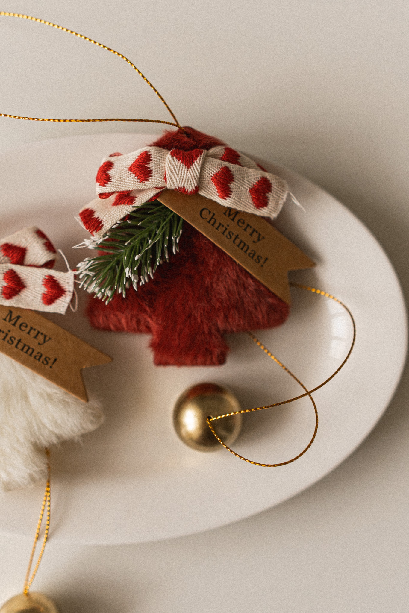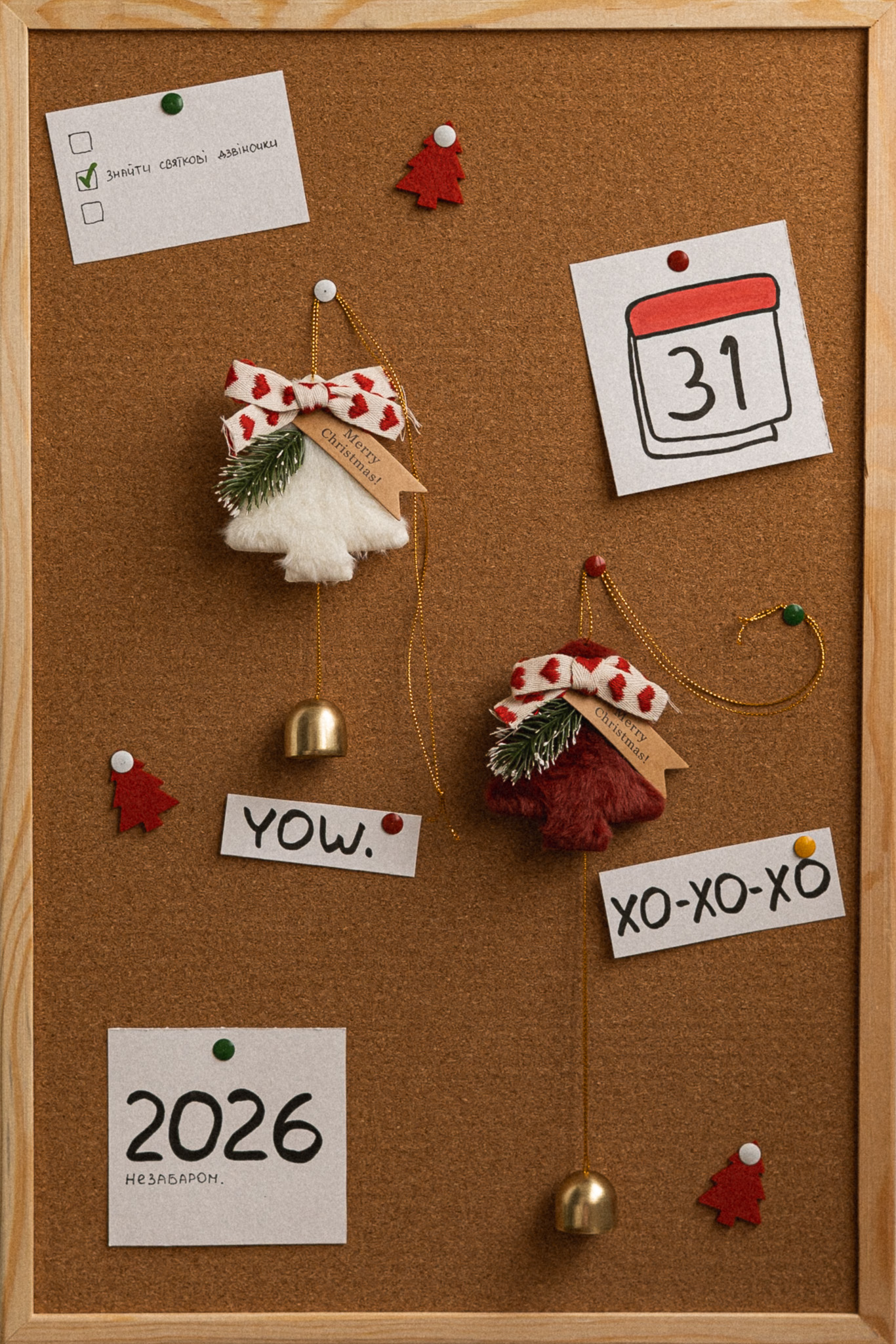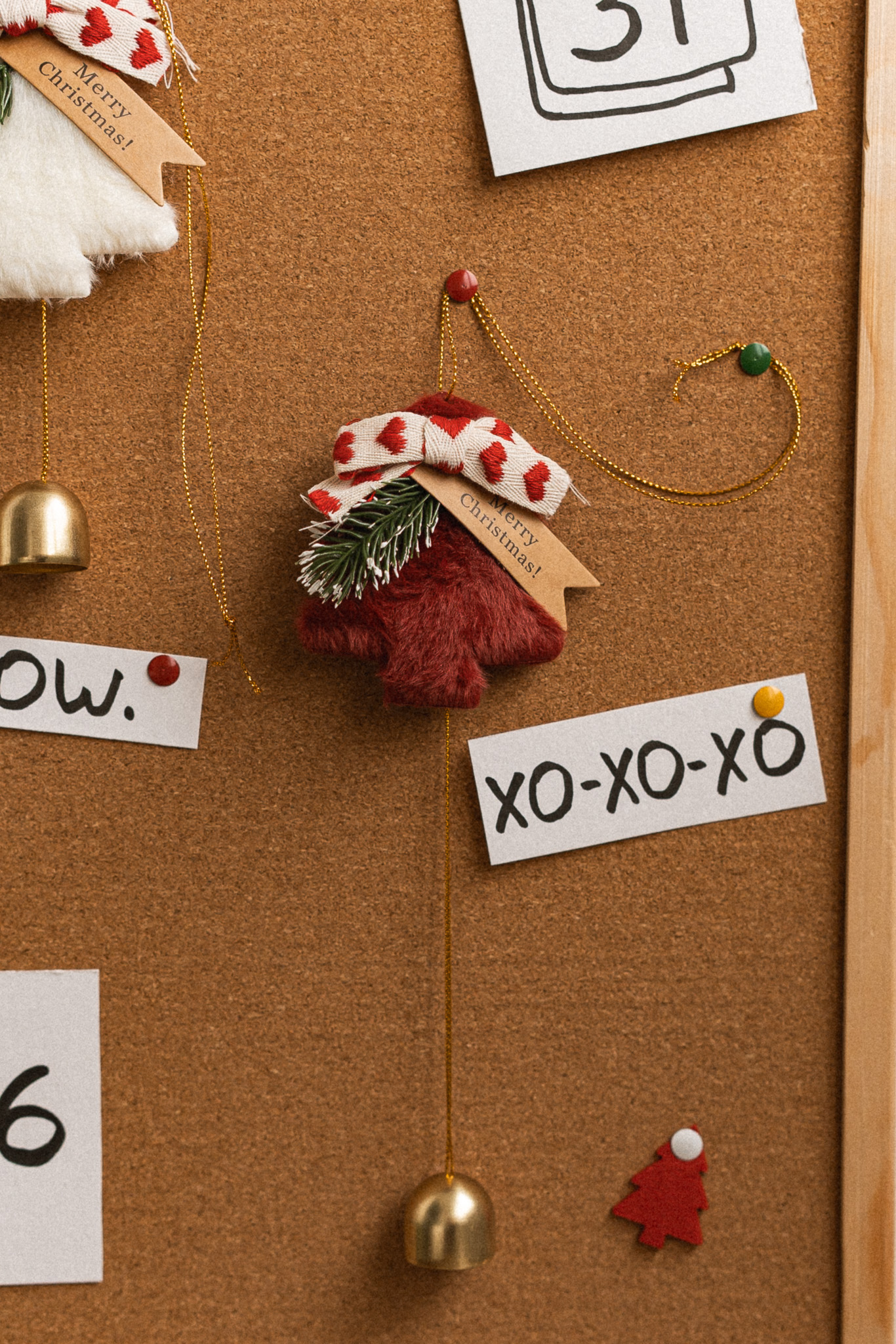 Іграшка підвіска, ялинка з дзвіночком, червона