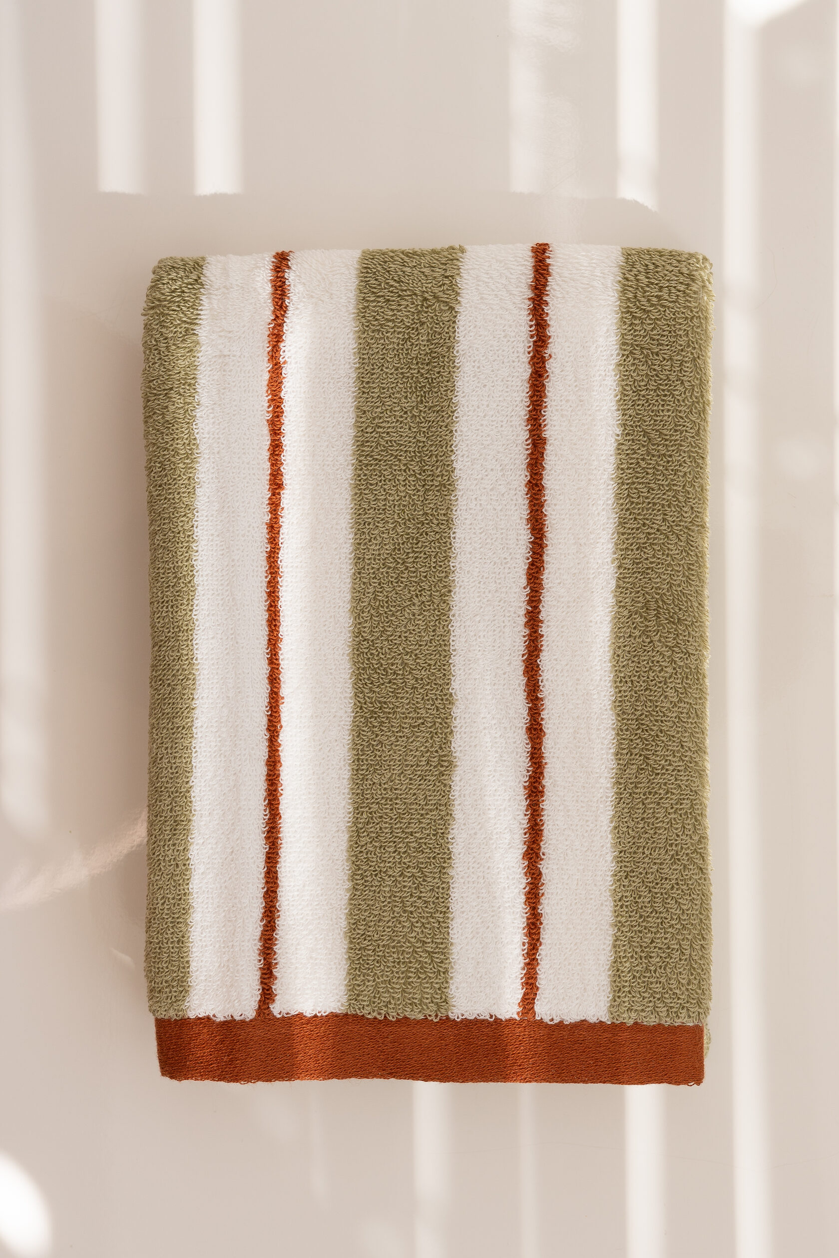 Рушник махровий смугастий (хакі з теракотовим кантом) 35х76 см
